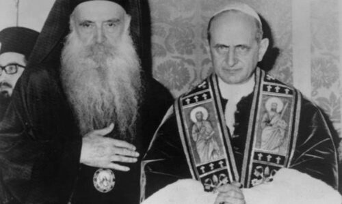 Με την ευκαιρία αυτή αξίζει να θυμηθούμε την επίσκεψη ενος άλλου Πάπα, του Παύλου ΣΤ’, στην Κωνσταντινούπολη, η οποία έγινε στις 25 Ιουλίου 1967. Είχε προ δύο ετών (1965) προηγηθεί η άρση των αναθεμάτων μεταξύ Ορθοδόξων και Ρωμαιοκαθολικών με πρωτοβουλία του Οικουμενικού Πατριάρχη Αθηναγόρα και του Πάπα. Έτσι άρχισε δειλά και σταδιακά ο θεολογικός διάλογος μετά από τη μακρά διακοπή των σχέσεων λόγω του Σχίσματος και κυρίως λόγω της Δ΄ Σταυροφορίας του 1204.